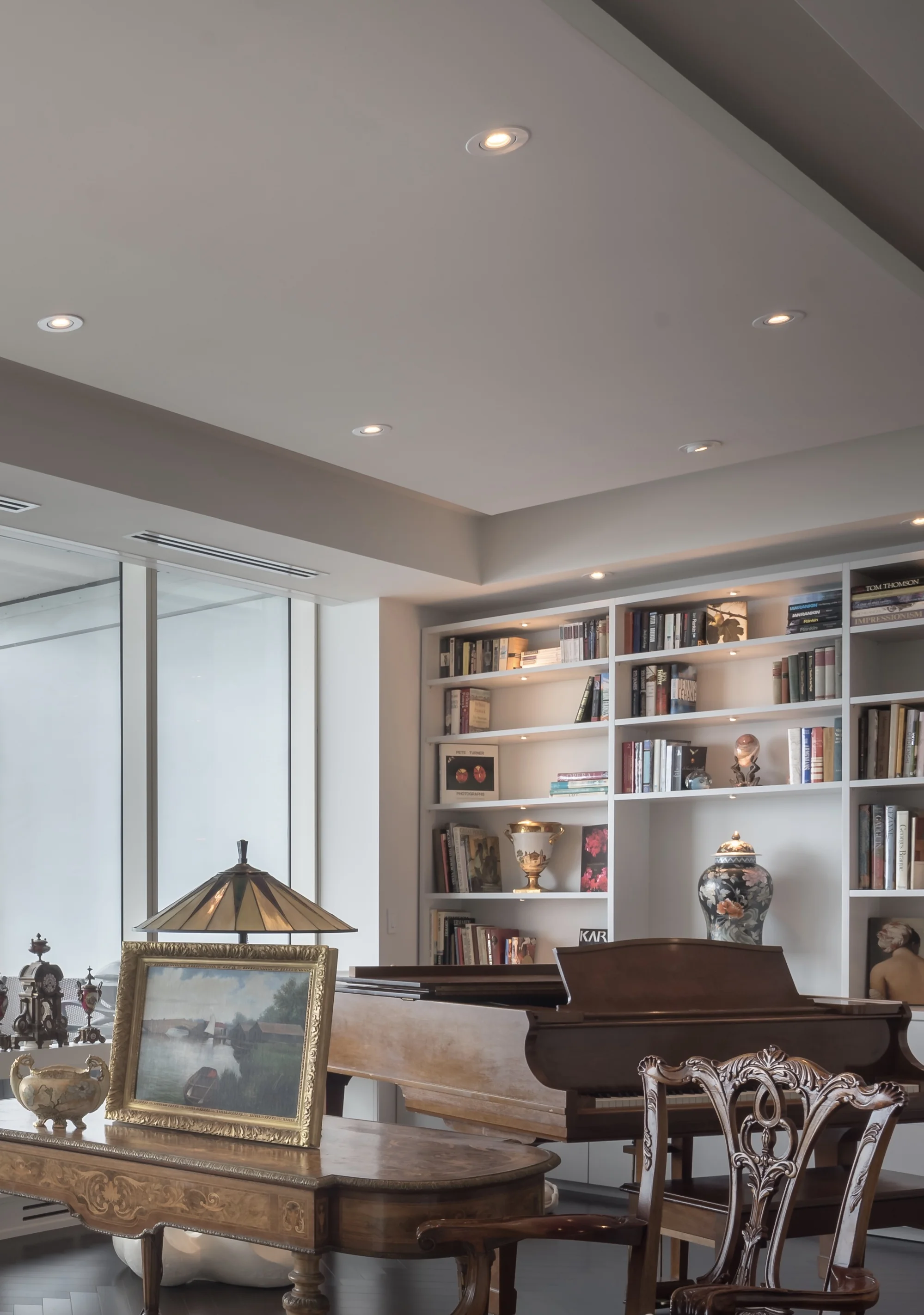 Mounted in the ceiling, the light from recessed luminaires (that’s the official term for light fixtures) is “ambient” - it spreads throughout the room, providing overall lighting in the space. Which can make a huge difference at night, of course, and also on gloomy days. And with a lighting plan that takes into account how you live in your space, you can make sure you have that light where you need it - something “Builder’s Basic” just can’t provide.